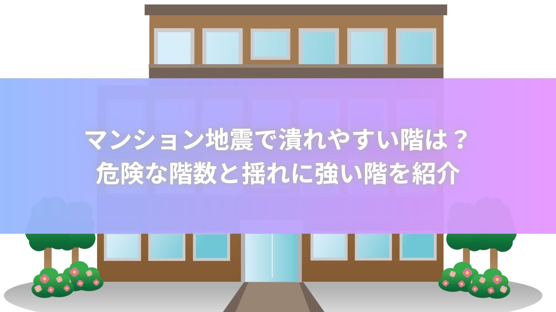 「マンションの1階は、地震で潰れやすい」という話を聞いたことがありませんか。しかし1階が危険とは限らず、どのフロアにもそれぞれ異なる不安要素が存在します。