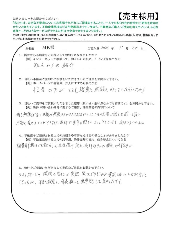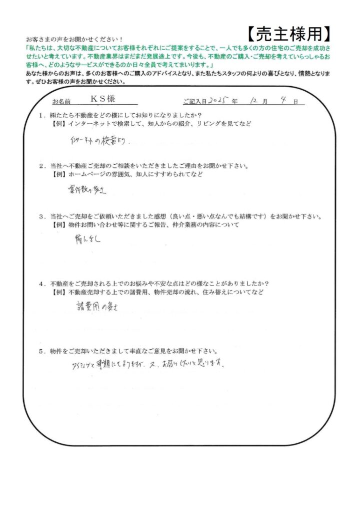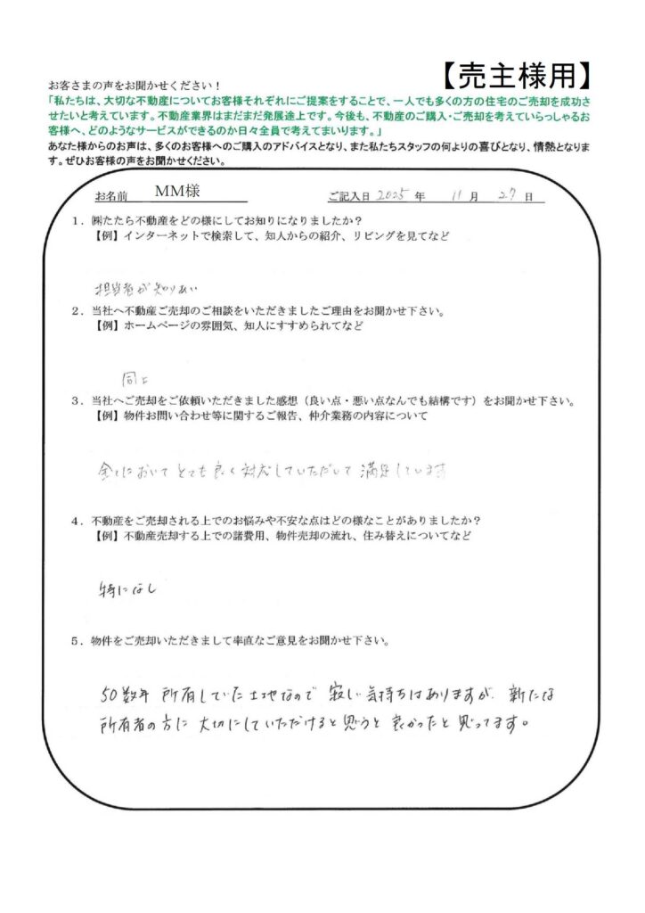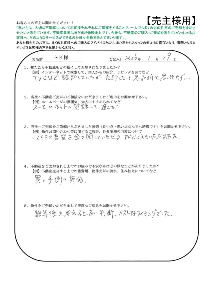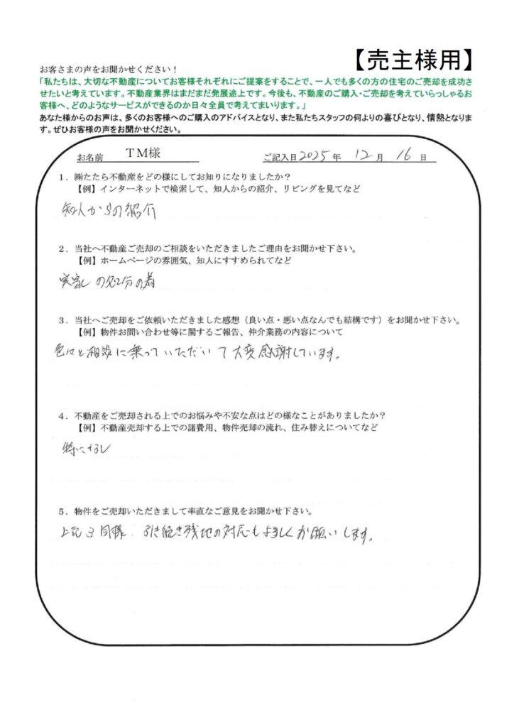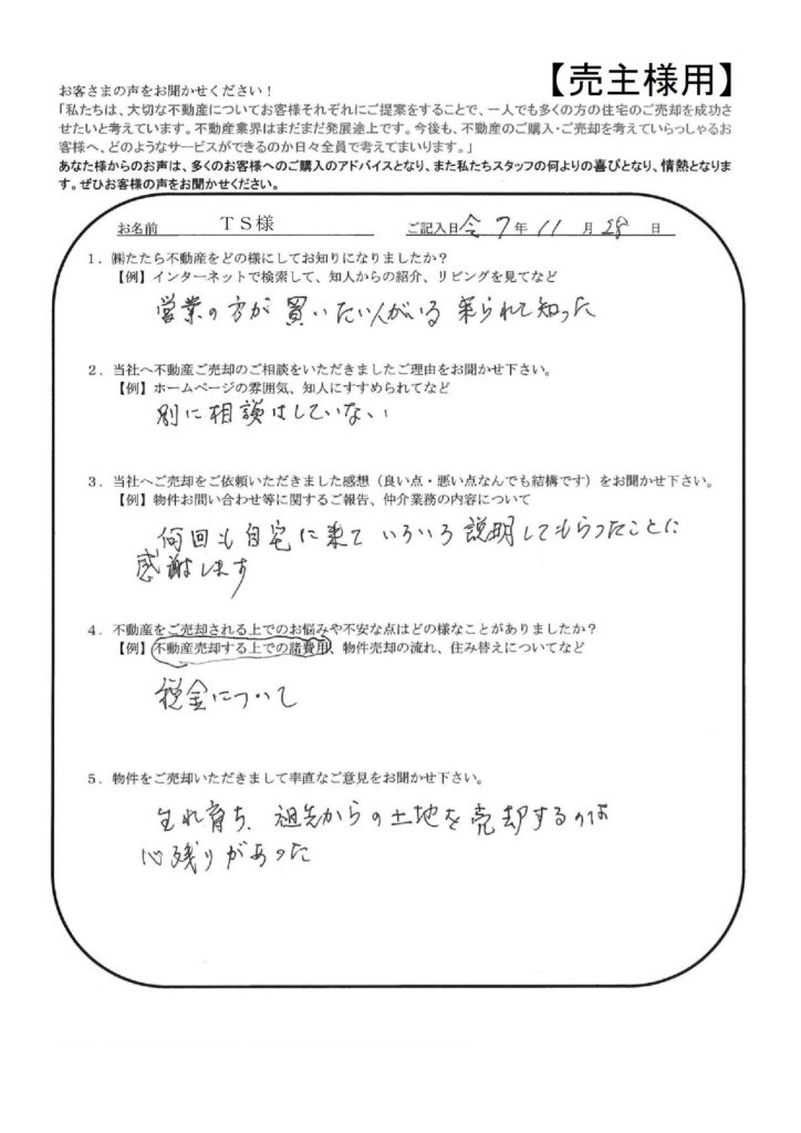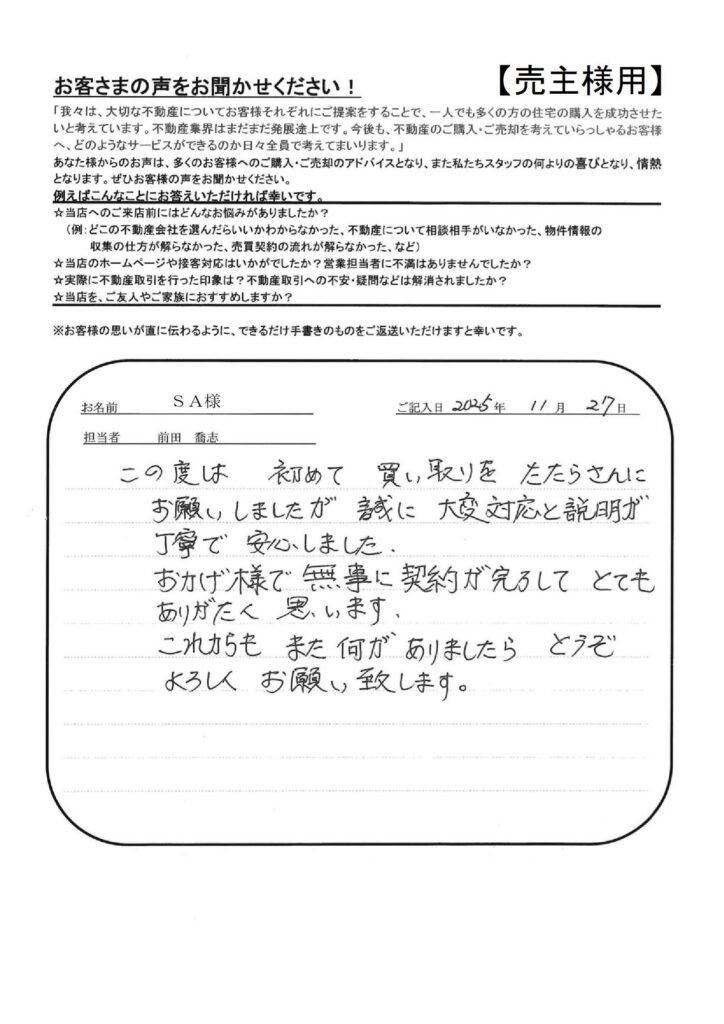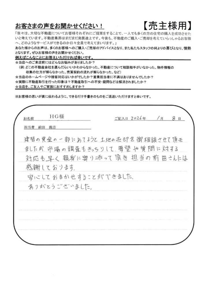 たたら不動産の仕事の早さには大変おどろきました。【YI様】」